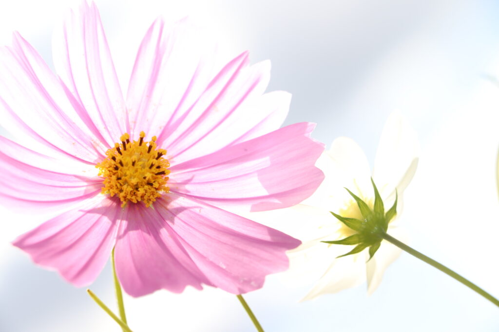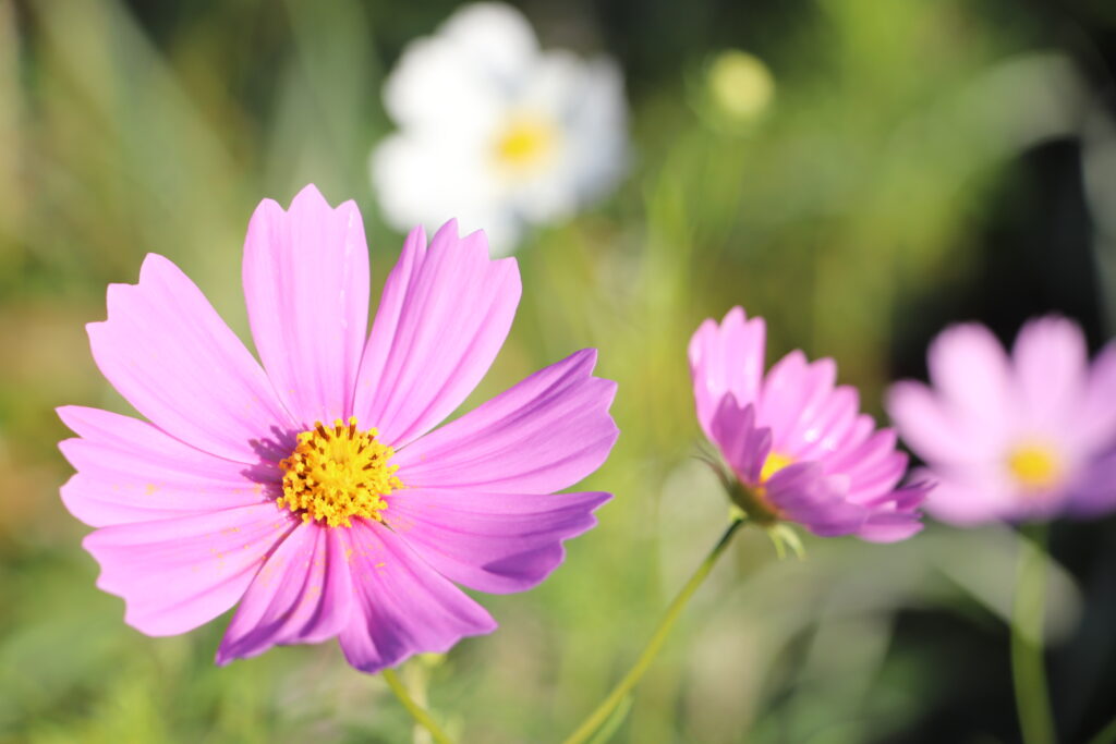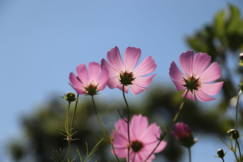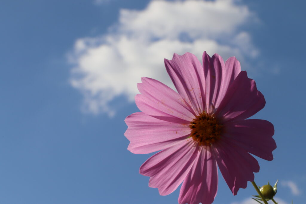 そんな日にはコスモスたちは 一身に日光を受け止めようとするかの如く いっせいにお天道様を仰ぎ見ます。