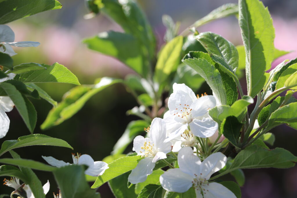 うららかな光をたくさん浴びて、 りんごを実らせる備えをしているかのようです。